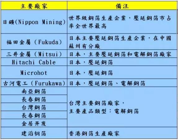 在产业链中,铜箔的主要厂家有: