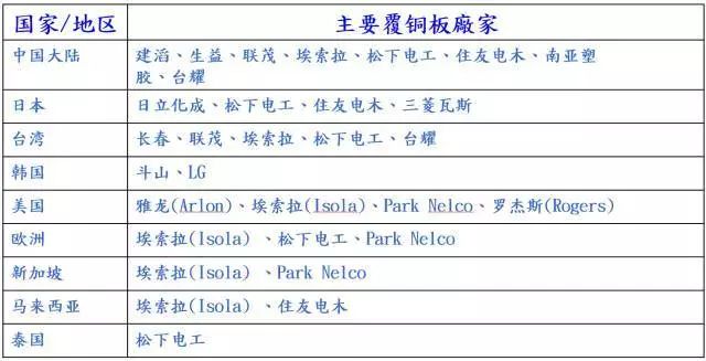 不同地区覆铜板的主要厂家: