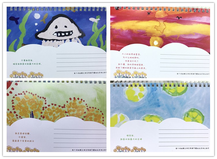 葛校长带来的礼物有着非凡的意义,丝巾和日历上的图案都是由康乃馨“星星的孩子”们亲自创作,孩子们通过画笔与自己的想象力,描绘出他们心中的飞机、小天鹅、太阳、小鸟、猫咪、荷花、月亮、蜻蜓等图案,不失纯真与俏皮,充满童趣。